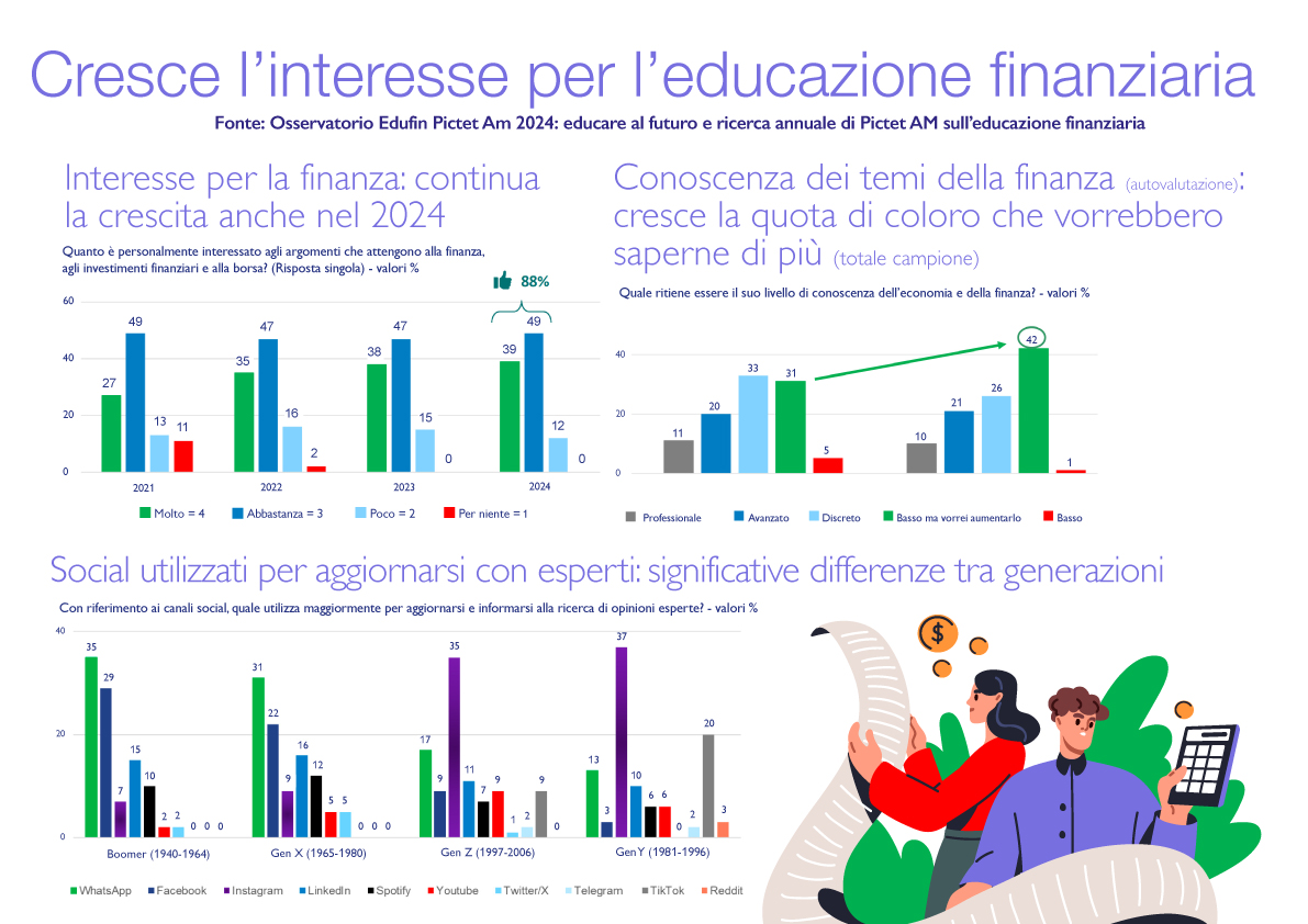 In occasione del mese dedicato all’educazione finanziaria, Pictet Asset Management ha presentato per il quarto anno consecutivo una nuova ricerca dedicata all’analisi dello stato dell’arte dell’alfabetizzazione finanziaria in Italia