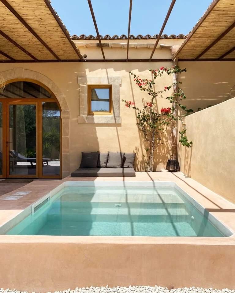 Sono presenti anche 4 suites, nella Masseria ristrutturata, tutte dotate di veranda con mini piscina privata. Armadi e arredi bagno in muratura tipicamente siciliani e docce spaziosissime. Soffitti di vecchie travi in legno, alti più di quattro metri. Vetrate ad arco con vista giardino.