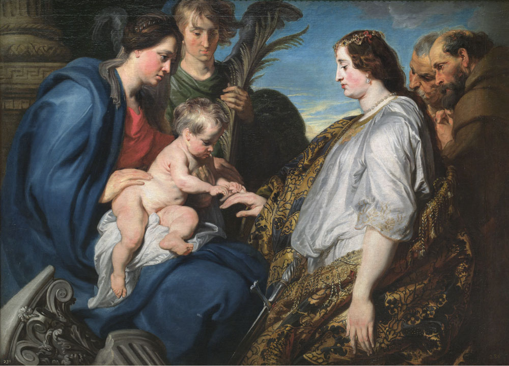 Uno dei nuclei più intensi del percorso dell’esposizione è quello dedicato alla produzione religiosa, dove emerge con chiarezza la capacità di Van Dyck di coniugare pathos e raffinatezza formale. Il grande “Matrimonio mistico di Santa Caterina”, proveniente dal Museo del Prado, si impone per l’equilibrio compositivo e la luminosità diffusa che avvolge le figure, mentre il “San Sebastiano” della Scottish National Gallery rivela una tensione emotiva più accentuata, costruita attraverso un uso calibrato della luce e una resa anatomica di forte naturalismo.